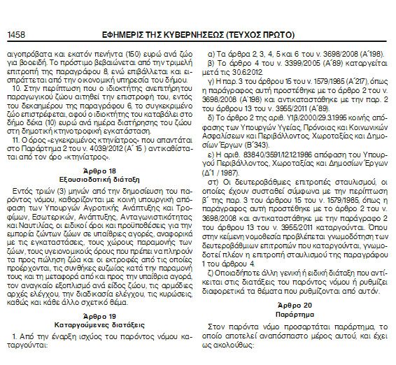 Εντελώς αναπάντεχα έπεσε στα χέρια μας η αναφορά σε έναν νόμο "για τα βουστάσια", ο 4056/2012 Ο νόμος αυτός εκδίδεται στο ΦΕΚ 52α στις 12/3/12 και φέρει την υπογραφή: Του Προέδρου της Δημοκρατίας Κάρολο Παπούλια, και υπογράφεται επίσης από τουςΕυάγγελο Βενιζέλο, Ά. Διαμαντοπούλου, Μ. Βορίδη, Μ. Παπαϊωάννου, Α. Γιαννίτση, Γ. Παπακωνσταντίνου, Α. Λοβέρδο, Μ. Χυσοχοϊδη, Δ. Αβραμόπουλο, Γ. Μπαμπινιώτη καιΠ. Γερουλάνο.